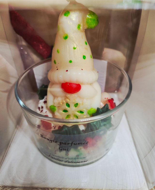 Un voyage dans un jardin enchanté où le gui, avec ses notes florales et vertes, est mis en valeur par des touches de lilas et un fond doux de musc et vanille, apportant chaleur et douceur. Poid: +/- 130g