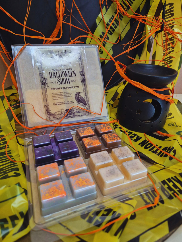 WOOOHH !!!!!!!! La box HALLOWEEN se compose de quetre fragrances,chacunes ayant comme poids +/- 50g. Le poids Net de la box: +/-200g.